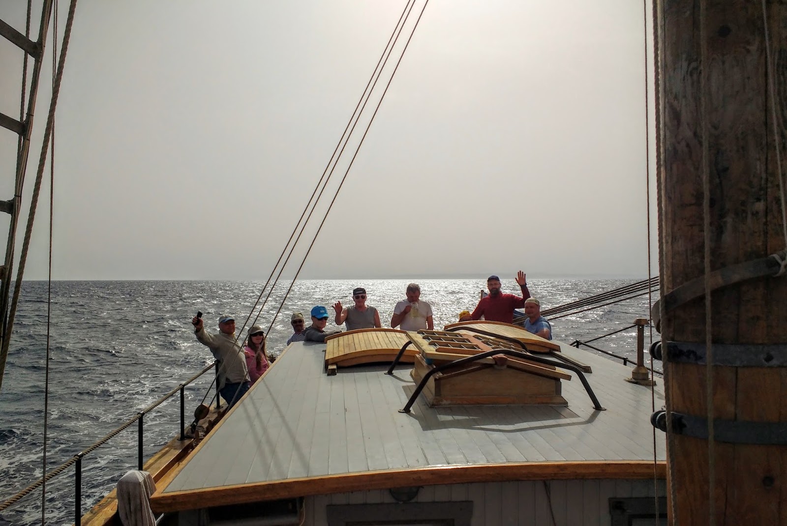 Sõidu algus oli päikesepaisteline ja nõrga tuulega. Aga üsna pea hakkas soodne tuul puhuma ja kohe muidugi purjed üles. Varahommikul olime Sürakuusas ja rahvas sai linnaloa keskpäevani - olime ajagraafikust selgelt maas. Kõik jooksid linnaga kiirtutvust tegema Udu väljuhääsete soovituste saatel, mis kohad kindlasti üle vaadata.
